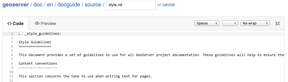 GitHub Preview of style.rst pageNote: you must first be signed into GitHub, and GitHub will help you create a fork from which to submit the quick fix, (we recommend that you keep the fork for next time.)
