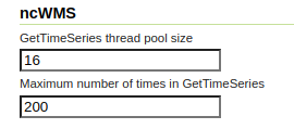 - Maximum number of times tha GetTimeSeries will process. A user asking for more times will get back a service exception. The configuration is set the first time the admin hits save in the WMS page, even with a value of 0 (from that point on, GetTimeSeries will be independent on the WMS max dimensions setting).
