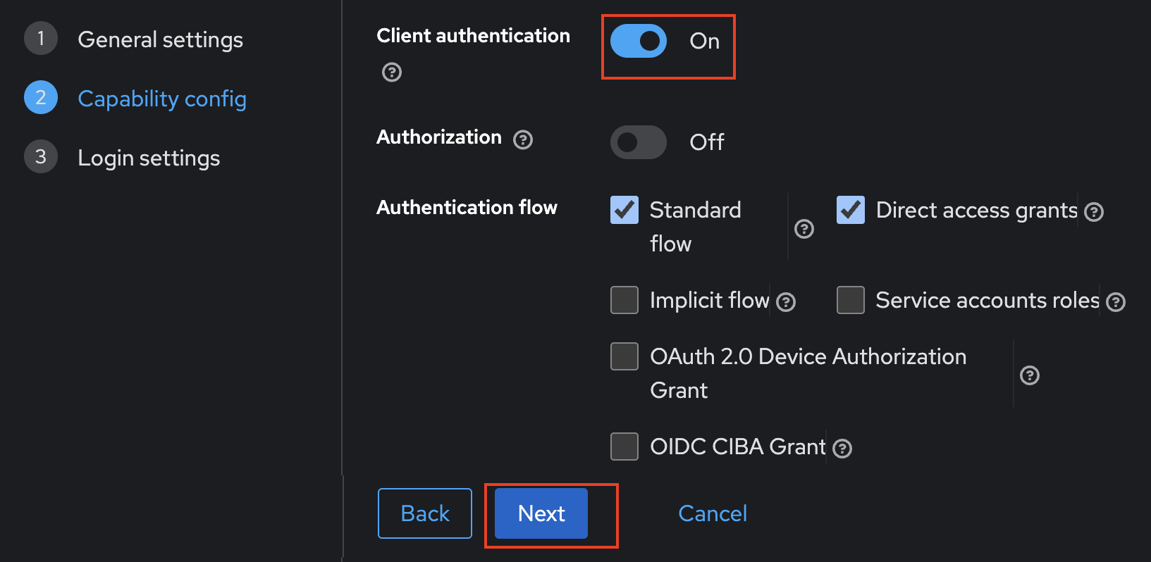 - "Client Secret" which was copied from the keycloak client's "Credentials" tab (see above)