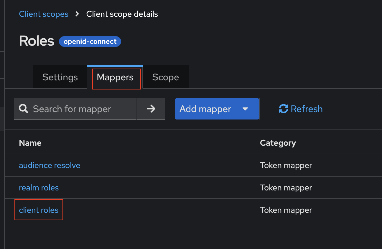 We will also put the Keycloak roles in the ID Token. By default, keycloak only puts the roles in the Access Token JWT (not in the ID Token).