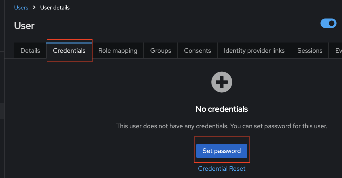 . Press the "Users" (left column) again, then click on the "admin" user.¶