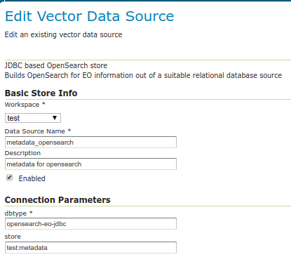 Go into the "OS-EO" service configuration page and configure the "OpenSearch" store