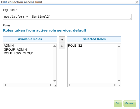 OpenSearch and STAC resources can be protected using the Security/EO Security menu entry: