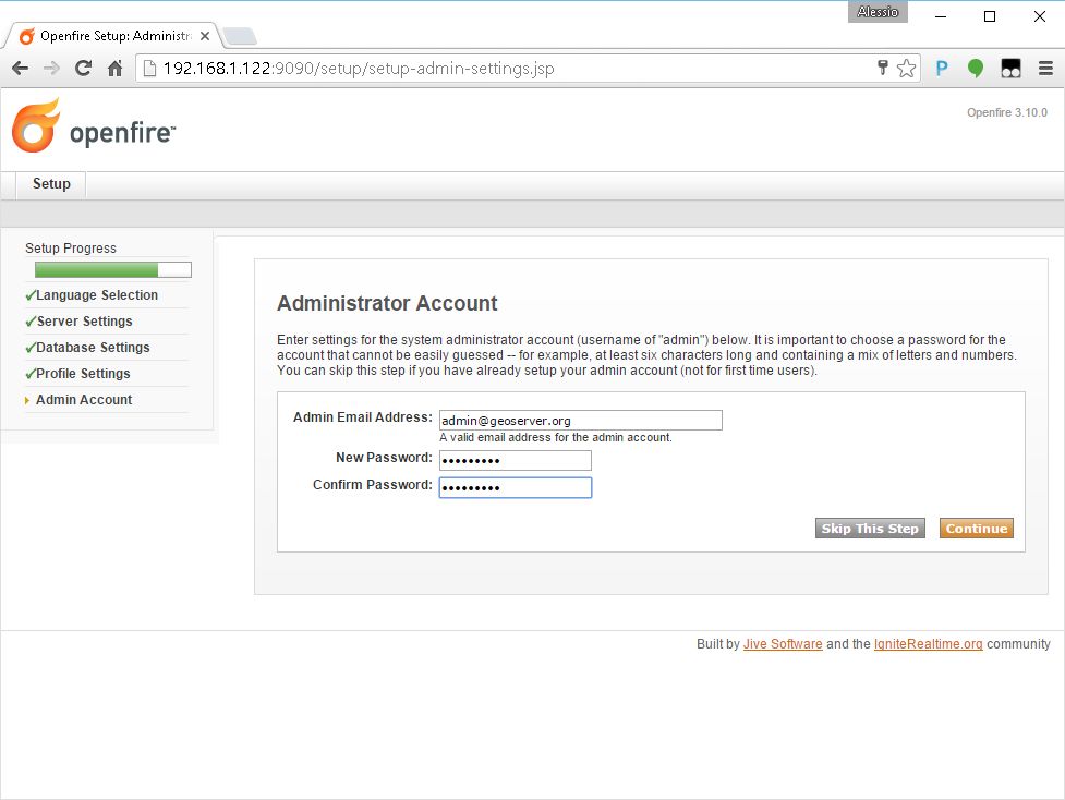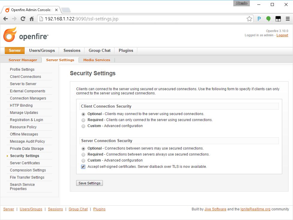 Installation Of OpenFire XMPP Server To Exchange Messages¶