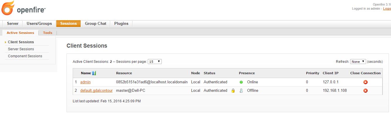 and the default.GdalContour instance successfully connected and authenticated into the XMPP Server channels