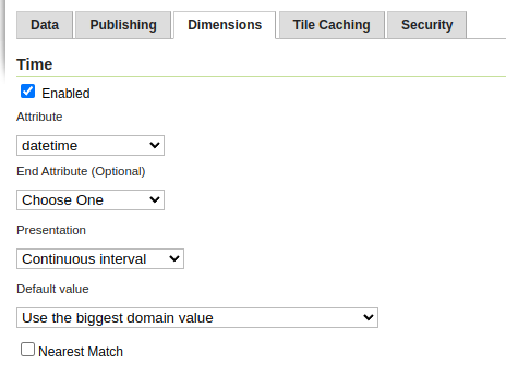 Also remember to configure the time dimension for this layer, for the same reasons explained in the vector data section above.