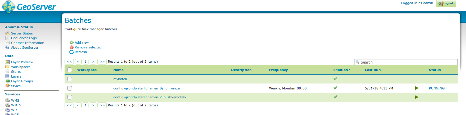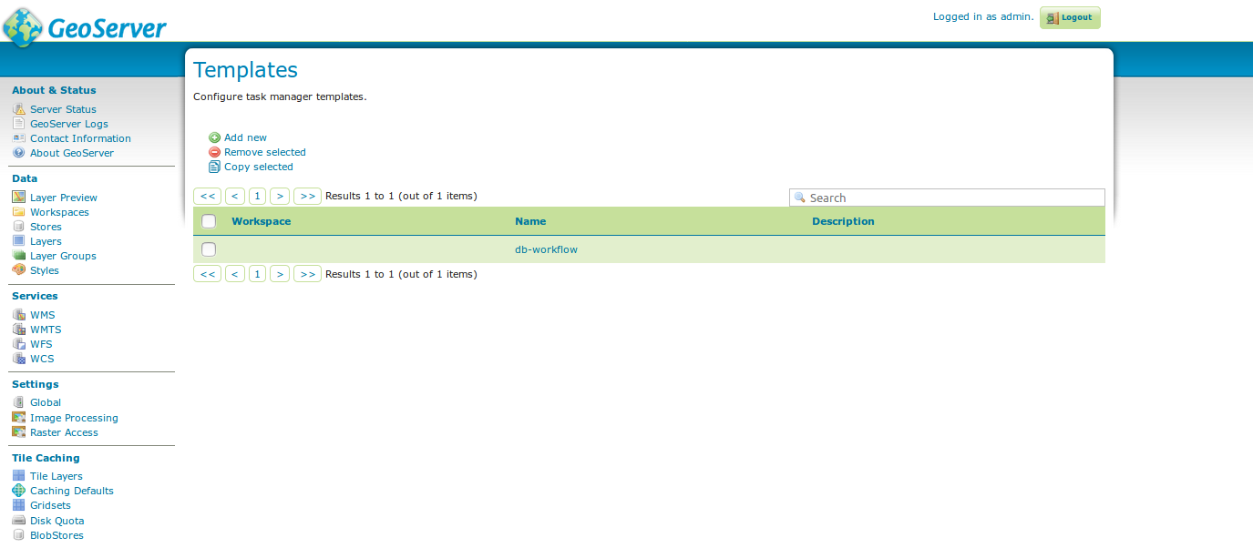 taskmanagerin the GeoServer Data Directory. You will be able to see the Task Manager configuration pages from the GeoServer WebGUI menu.