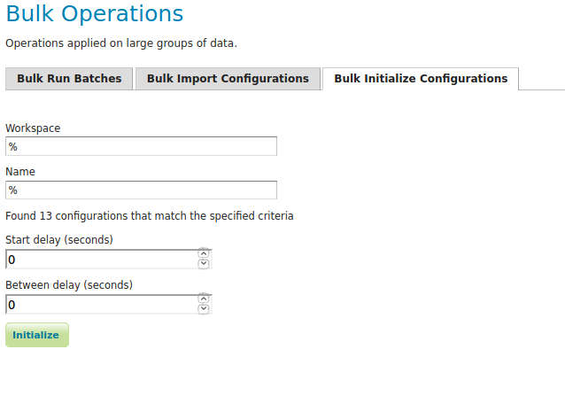 If you have imported configurations in bulk based on an Initializing template, you may also want to initialize them in bulk. This works similarly to running batches in bulk. The configurations will be validated after initialization.