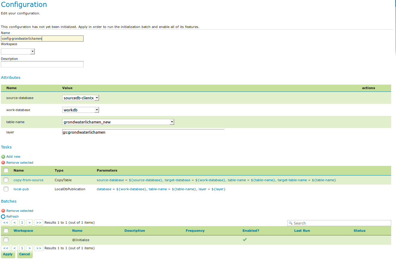 After clicking apply, the configuration is being initialized (the layer is created locally)...