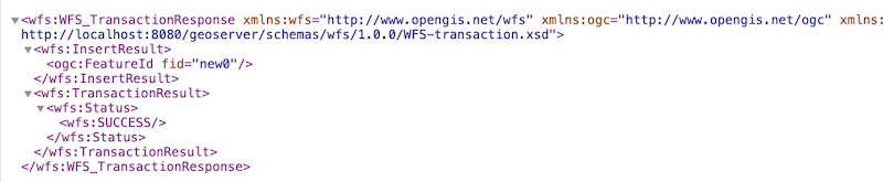 WFS Transaction result after pressing Show Result in New Page (Your browser may render this differently). (Demo Request WFS_transactionInsert.xml)