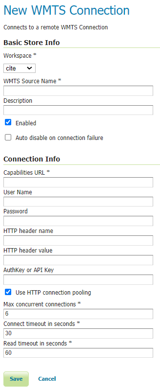 - Enables the store. If disabled, no data from the remote WMTS will be served.