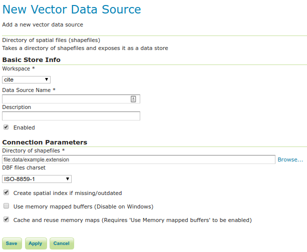- Enables the store. If disabled, no data in any of the shapefiles will be served.