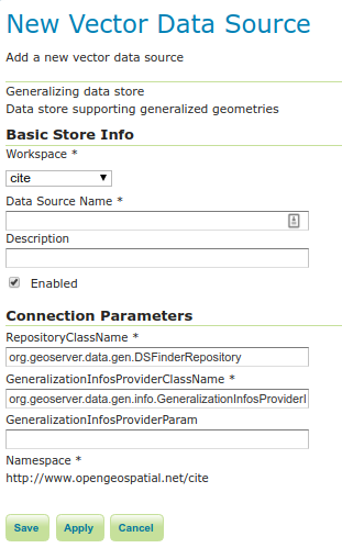 If the extension is properly installed, Generalized Data Store will be listed as an option when creating a new data store.
