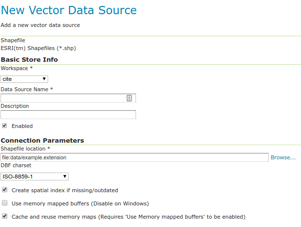 - Enables the store. If unchecked, no data in the shapefile will be served.