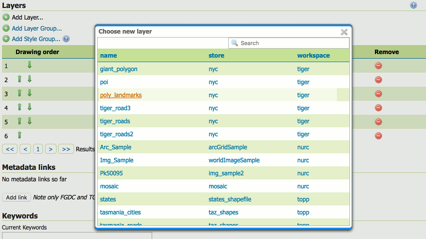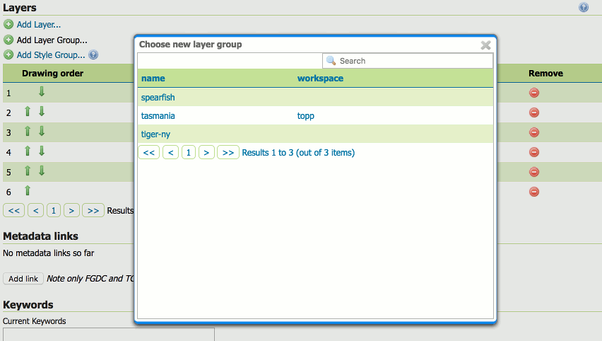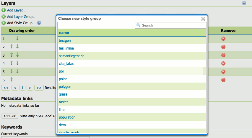 Is possible to associate a layer group with some keywords that will be used to assist catalog searching.