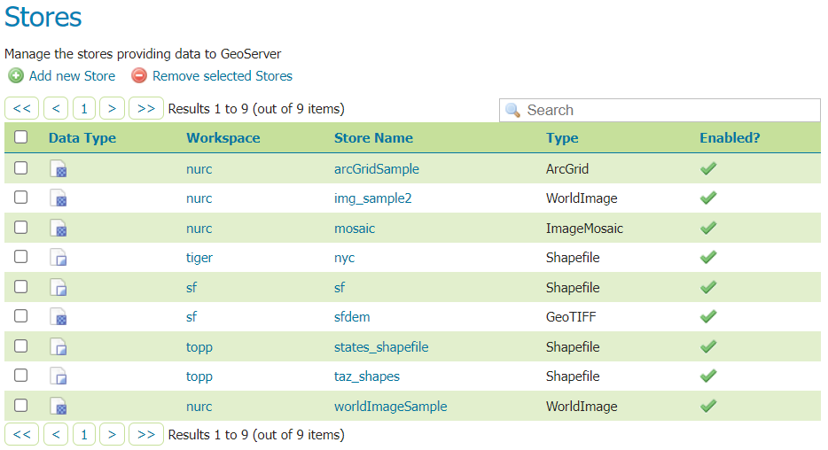 While there are many potential formats for data sources, there are only four kinds of stores. For raster data, a store can be a file. For vector data, a store can be a file, database, or server.