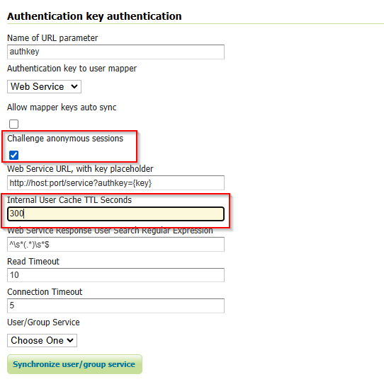 Web Service URL, with key placeholder- the complete URL of the key mapping webservice, with a special placeholder ({key}) that will be replaced by the current authentication key