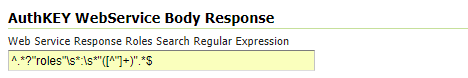 Web Service Response User Search Regular Expression- a regular expression used to extract the username from the webservice response; the first matched group (the part included in parentheses) in the regular expression will be used as the username; the default (\^\s(.)\s*\$) takes all the response text, trimming spaces at both ends