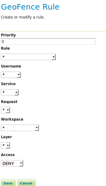 - Click on the "Add new rule" link. Change only "Access" to "DENY".