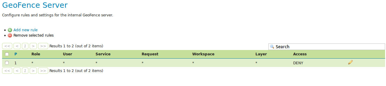 Since we defined no rules yet, the default behavior of GeoFence is to deny access to all resources. ::::