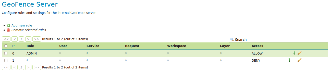 1. Open a new tab with your browser and go to the following URL: http://localhost:8080/geoserver/geofence/rest/rules. You should get an XML representation of your rules: