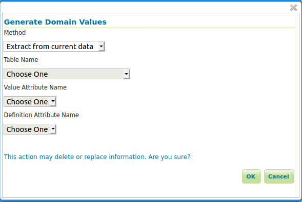 : - Using the existing data in the database for this attribute. - Using data from a look-up table in the same database. In this case you must specify the table, an attribute from which to take values and an attribute from which to take definitions.