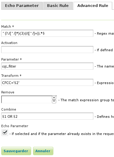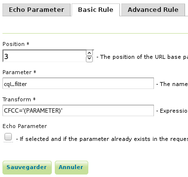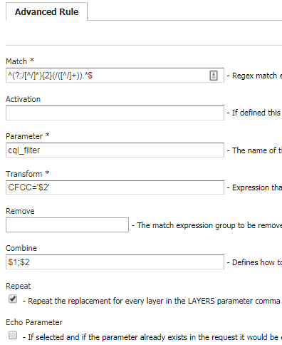 For commodity is also possible when defining this type of rules to configure that an existing parameter in the URL should be echoed to a get capabilities result.