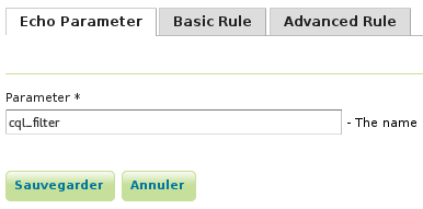 This module is configured using three types of rules: echo parameter rules, basic rules and advanced rules. All of them can be managed in this module UI which is integrated in GeoServer UI.