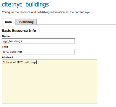nycand the Namespace URI ashttp://geoserver.org/nyc.Note