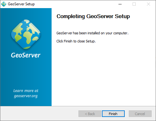 The Windows installer provides an easy way to set up GeoServer on your system, as it requires no configuration files to be edited or command line settings.