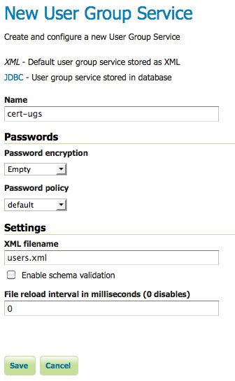 Users authenticated via a X.509 certificate must be configured in GeoServer. For this a new user/group service will be added.