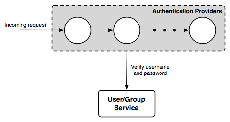 A user/group service is primarily used during authentication. An authentication provider in the Authentication chain may use a user/group service to authenticate user credentials.