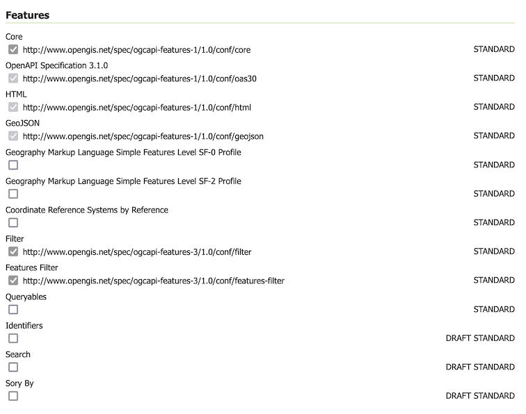 The OGC API Feature Service is modular, allowing you to enable/disable the functionality you wish to include.