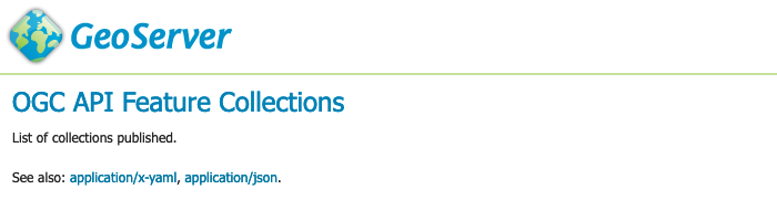 ogc/features/collections.ftllists published collection:~~~ {% include "../../../../../../src/extension/ogcapi/ogcapi-features/src/main/resources/org/geoserver/ogcapi/v1/features/collections.ftl" %} ~~~