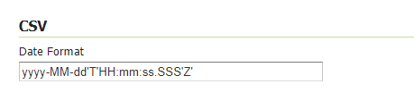CSV is still widely used as a format to exchange tabular data. For GeoServer CSV output format, the date field format can specified using the Date Format text box as shown above. Here are some common formatting patterns supported