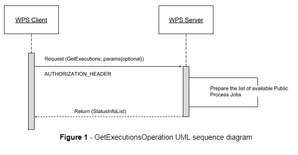The GetExecutions Operation allows WPS clients to retrieve the list of available process jobs running on a WPS instance. The output is returned in the form of an XML document.