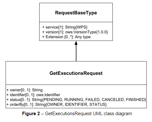 The GetExecutions Request is a common structure for synchronous execution. It inherits basic properties from the RequestBaseType and contains additional elements that allow to filter out, refine and order the list of available Process Jobs.