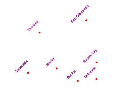 The points layer used for the examples below contains name and population information for the major cities of a fictional country. For reference, the attribute table for the points in this layer is included below.