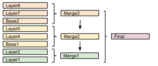 The next layer is another base, so "Base2" will be again drawn to an off-screen buffer, and layer 7 and 8 will be drawn/composited on top of it, forming Merge3. Once Merge3 is ready, it will be drawn/composited on top of the already fused Merge1/Merge2, generating the final map.